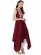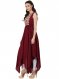 Maroon and beige printed Anarkali kurta, has a round neck, sleeveless, handkerchief hem, no slits